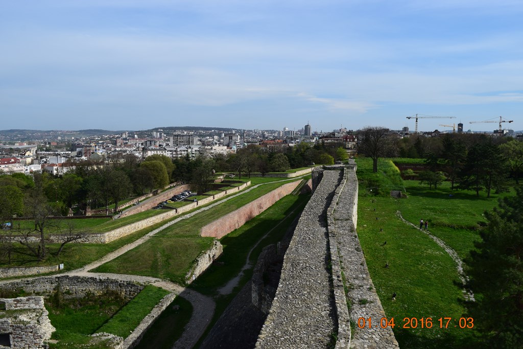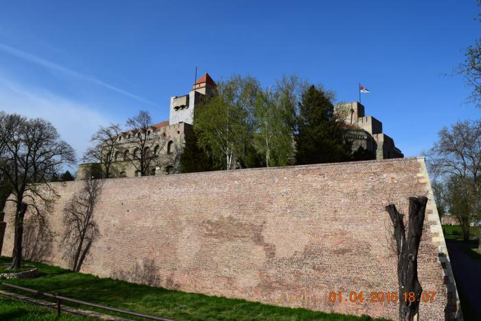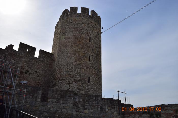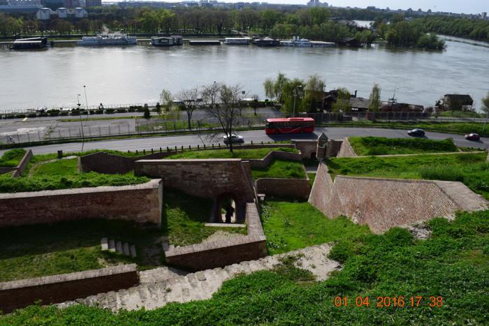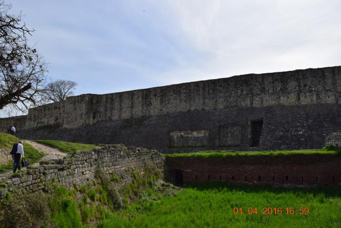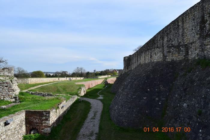 Здесь видно, что одна стена (внутренняя) сделана из белого камня, а вторая (внешняя) из красного кирпича. Считается, что крепостные постройки из белого камня византийские и сербские, а из красного строили турки и австрийцы.