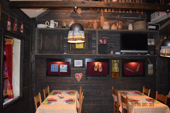 Мы расположились на улице. Внутри заведение симпатично, выдержано в национальном стиле. Этакий придорожный трактир.
