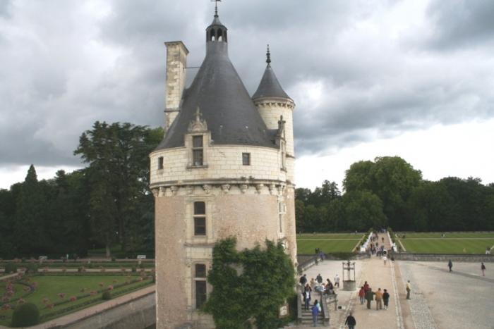 Кому интересно, немного истории… «В 1512г. Тома Бойе купил средневековое поместье на реке Шер. В него входили окружённая рвами крепость и водяная мельница. От крепостных укреплений оставили одну башню, а от мельницы две опоры. На них построили квадратное здание с угловыми башенками. Шенонсо стал первым во Франции замком, залы которого выходят в центральный холл, где вместо готической винтовой лестницы используется лестница с прямыми маршами, а на фасаде есть балкон, построенный не для утилитарных целей и не для наблюдения за турнирами, а для неспешных прогулок по парку.