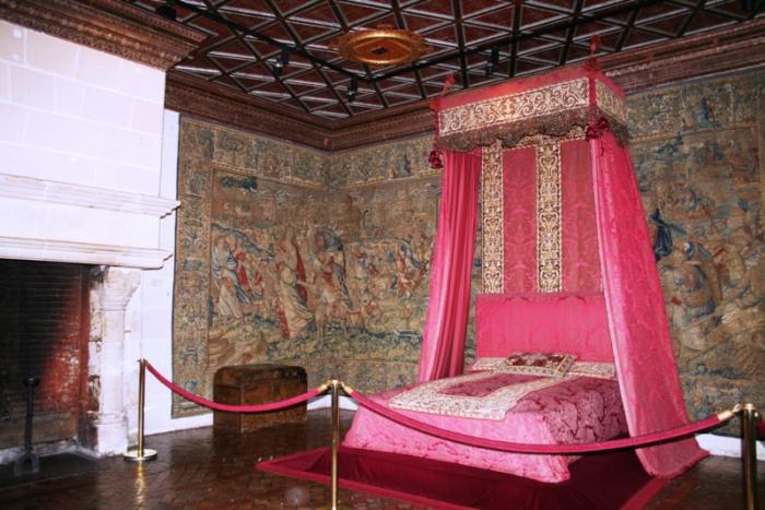 На восточный фасад выходит спальня Екатерины Медичи и спальня пяти королев, получившая такое название из-за того, что здесь жили две коронованные дочери и три невестки королевы-матери. Потолок набран из треугольных плашек. На гобеленах 16 века изображены сцены из античной жизни.»