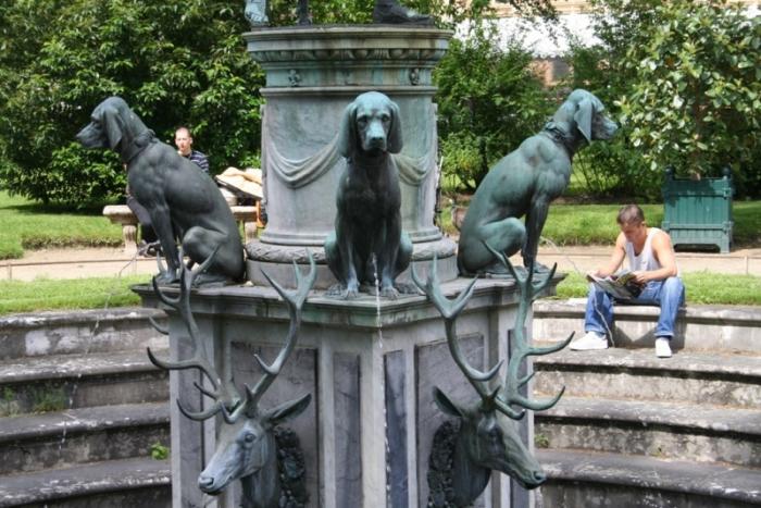 Когда мы приехали, только закончился дождь, запах был просто чудный – пахло свежестью, листвой и цветами. С правой стороны мы увидели королевскую ферму и гуляющих животных. Аллея заканчивается красивым и ухоженным регулярным парком.