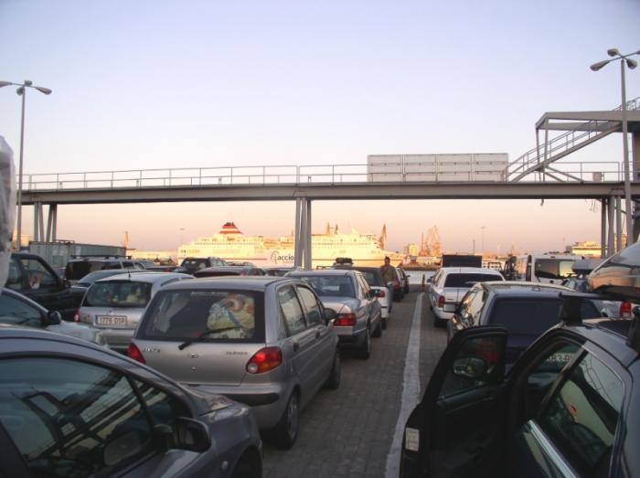 Паром должен был отчалить в час ночи, а движения никакого не было, поэтому беспокойные испанцы стали сигналить и требовать погрузки.