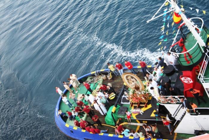 В воздухе повисло ожидание, мы с удивлением ждали продолжения. Постепенно вся толпа пришла в движение. Зазвучала музыка. Все двинулись к кораблику, на который бережно погрузили статую мадонны. Под общее ликование кораблик сделал почётный круг, все суда приветствовали её гудками.
