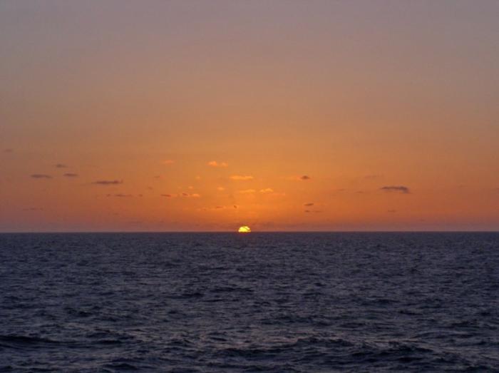 Мы бегали с палубы на палубу, чтобы всё увидеть и ничего не пропустить. Тарас подошёл к испанцу, который немного говорил по-русски и узнал от него, что мы присутствуем на фиесте. Время пролетело незаметно, и мы снова оказались в открытом океане. Удивительный вечер закончился замечательным закатом…