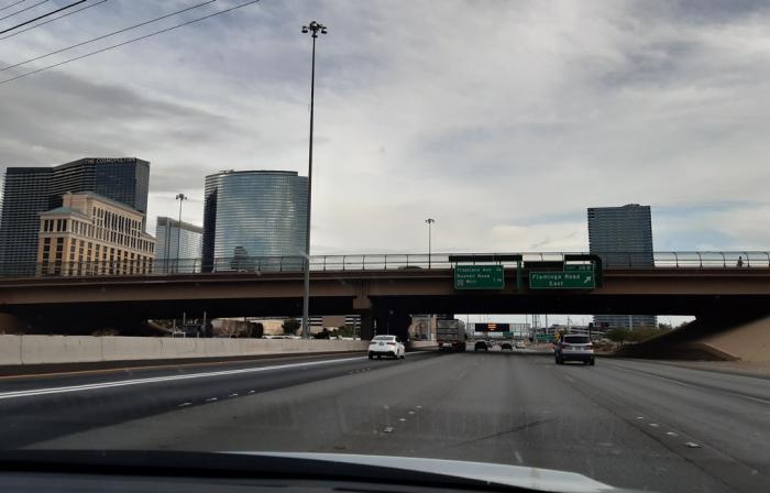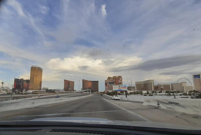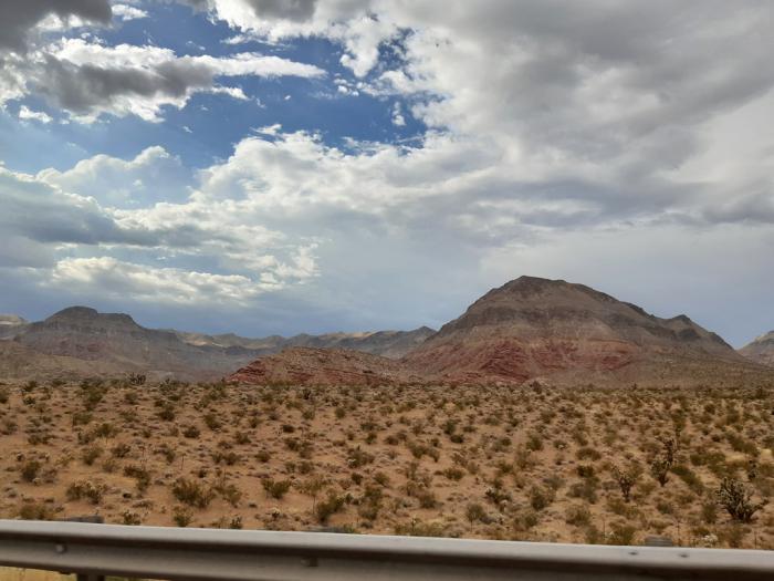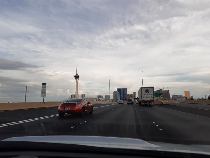 Невада встречает нас неожиданным дождём, бесконечным поездом от горизонта до горизонта, у которого ещё и вагоны были двухэтажные, и ярким напоминанием, что мы приближаемся к игорной столице США…