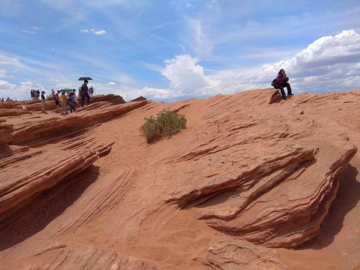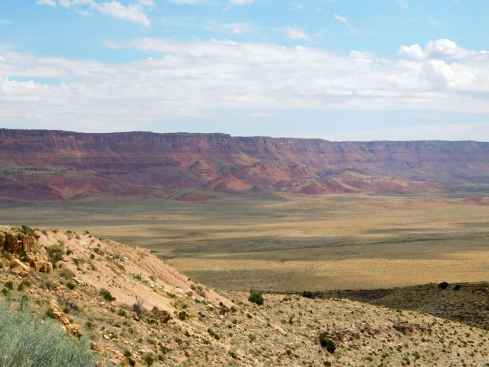 Вообще, на этот день у меня были большие планы. И, возможно, если бы мы ночевали в Jacobs Lake, они были бы реализованы в полной мере. Всё же минимум час мы потеряли, чтобы вернуться на трассу. С другой стороны, мы бы увидели меньше Гранд Каньона. Так что я не жалею, что всё сложилось именно так. Среди целого ряда намеченных, но не посещённых в этот день достопримечательностей, самая выдающаяся — это Каньон Антилопы. Наберите Antelope Canyon в гугл, и вы поймёте, насколько всё серьёзно. Фотографии оттуда — это из разряда готовых заставок для Windows. Туда пускают исключительно с недешёвыми турами, которые проводят индейцы Навахо. Роскошный щелевой каньон там, на самом деле, не один. Верхний всегда заполнен толпами народа, нижний чуть лучше, а я наметил и вовсе малоизвестный вариант в стороне от протоптанных путей. Но не срослось. Когда мы подъезжали к Page, где для посещения этого чуда надо было бы съезжать по 98-й на восток, стало ясно, что время для этого уже слишком позднее. Так что мы продолжили свой путь по дороге 89. Половина из нас при этом слегка вздохнула, а другая (лучшая) половина осталась в блаженном неведении.