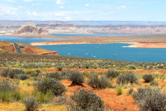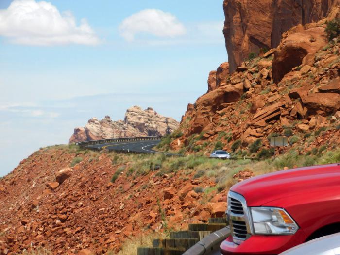 Менее чем в 10 км от Подковы, мы проезжаем одну из крупнейших плотин на западе США — Glen Canyon Dam. Эту запруду высотой 220 метров строили десять лет, до 1966 г. Её создание привело к затоплению Глен Каньона и созданию на его месте водохранилища Lake Powell, за что «зелёные» до сих пор не могут простить правительство. Периодически, возникают петиции с требованием разрушить плотину и вернуть всё «как было». Так что, наверное, мы зря не остановились здесь посмотреть на ГЭС вблизи, пока она существует. По отзывам — зрелище достойное, особенно, если ещё и с экскурсией внутри погулять. А мы только из окна машины полюбовались, даже фотографий стоящих не получилось.