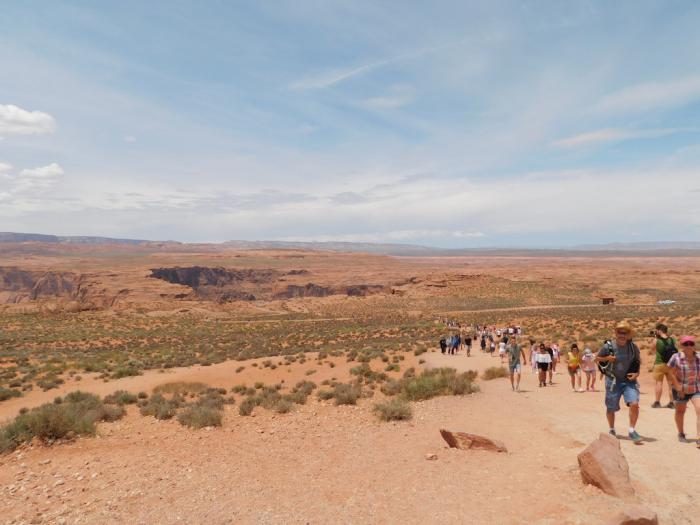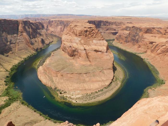 В 12:40, проехав 56 км от мостов Навахо, мы подъезжаем к тому, что иногда (неправомерно) называют восточной кромкой Гранд Каньона (East Rim). Как и знаменитый каньон, здешняя достопримечательность — результат неутомимого труда реки Колорадо. Однако туристов она привлекает не столько глубиной и шириной трещины, сколько её очень живописным изгибом — излучиной реки, напоминающей лошадиную подкову. Отсюда и название.