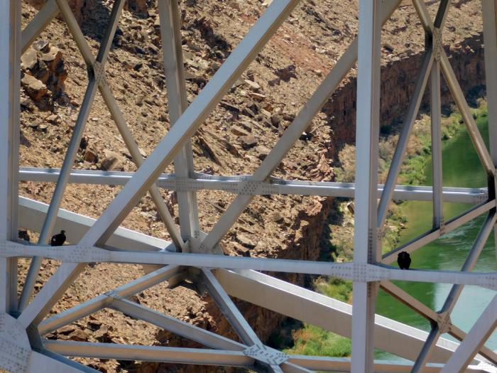 В 11:30 мы останавливаемся в 66 км от Jacobs Lake, чтобы осмотреть инженерную достопримечательность — мосты-близнецы, построенные через реку Колорадо.