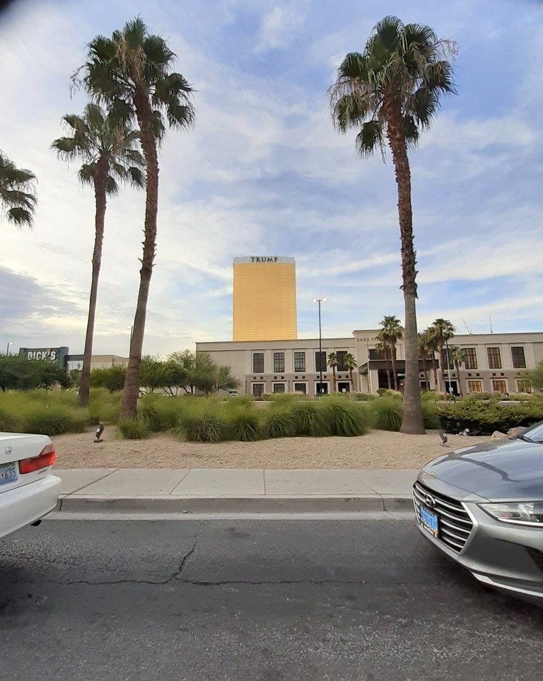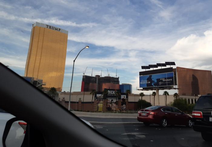 Наверное, здесь надо гулять вечером, любуясь огнями подсветки, фонтанами и копиями мировых достопримечательностей. Но у нас даже не возникло желания остановиться и осмотреться. Разве что вокруг случайно замеченной Trump-Tower сделали петельку.