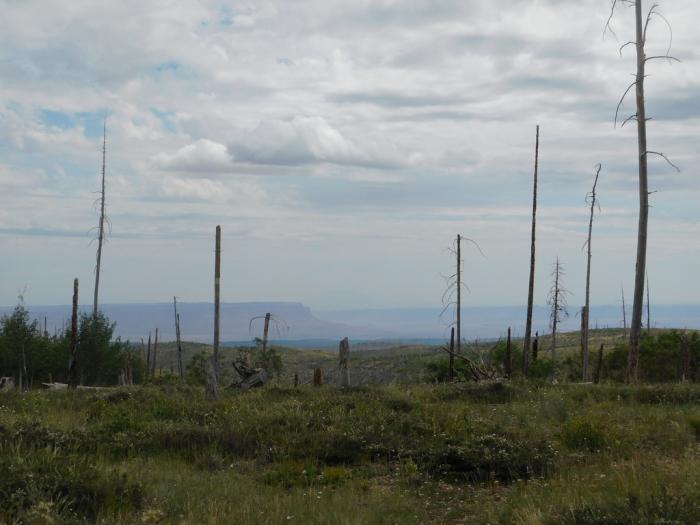 В 10:40, проехав за час 70 км, мы в Jacobs Lake (месте нашего несостоявшегося кемпинга) поворачиваем в сторону Page. Минут через 20 перед нами распахивается вид на долину внизу.