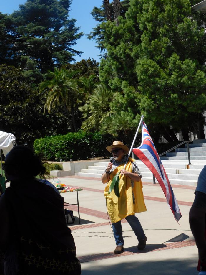 В тот момент, мы, конечно, не поняли, что нужно этим людям с флагами и в странных нарядах с каким-то орнаментом. Я предположил, что это как-то связано с индейцами, и почти угадал. Mauna Kea — слова, постоянно звучавшие на митинге, это название самого высокого вулкана на Гавайях. На нём уже больше 50 лет существует астрономическая обсерватория с несколькими телескопами. Но лет 10 назад учёные приступили к строительству огромного 30-метрового телескопа на этой горе. А для аборигенов гора является святыней. В общем, что-то вроде нашего шихана Куштау, только у нас речь шла не о науке, а о коммерции и возможном уничтожении самой горы. В США, однако, тоже началось активное противостояние между строителями и протестующими. Дело дошло до Верховного суда, но и его решение никого не успокоило. В момент нашего визита основные митинги проходили в столице штата Гавайи, а здесь, в Сакраменто, активисты выступали в знак солидарности.