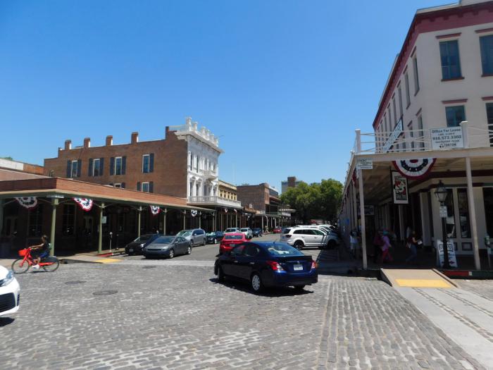 В 1862 году, после того как город был смыт водой уже в третий раз, власти были вынуждены принять давно предлагавшийся амбициозный проект подъёма уровня почвы. Землю и камни везли в фургонах и засыпали ими улицы. Однако, со временем центр города стал сдвигаться на восток, на более высокие участки. А «колыбель» Сакраменто превратилась в район притонов, где было опасно появляться по вечерам. Лишь в 1960-х уцелевшие здания времён золотой лихорадки были взяты под охрану, и возле старинной пристани появился первый "исторический район" на Западе США. Туда мы и зарулили, чтобы бросить хотя бы беглый взгляд на «дикий запад».
