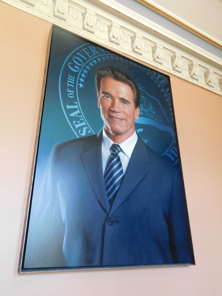 Да, другой мир, другие порядки. Набравшись наглости, я, когда мы в позолоченном лифте спустились вниз, спросил у сотрудников музея: где находится губернатор Калифорнии? Они посмотрели на меня с некоторой опаской и сообщили, что руководитель штата с населением в 40 миллионов человек принимает по предварительной записи. Но когда поняли, что меня интересует не сам чиновник (хотя было бы прикольно), а его кабинет, радостно бросились объяснять, что это тут за углом. И действительно, массивные двери с надписью «Губернатор» были легко доступны для всех посетителей. Возле них дремал одинокий охранник, но это не мешало всем желающим фотографироваться на фоне «своего нового кабинета».