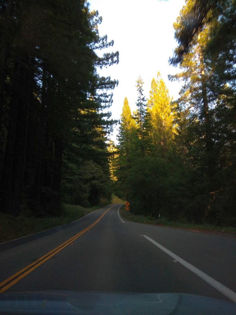 Нафотографировавшись на фоне «большой воды», мы, совершенно счастливые, отправились обратно. В 18:40 мы вернулись в Fort Bragg. А в 19:35, пробравшись сквозь дремучие леса, снова встали на 101 шоссе.