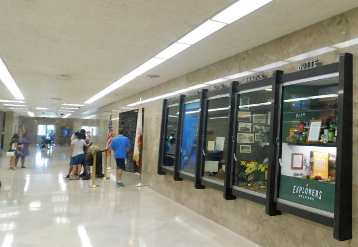 Когда из Ротонды мы спустились в цокольный этаж, то обнаружили там музейные стенды всех 58 областей или графств Калифорнии. Наглядным и, зачастую, забавным образом нам представили эти территории, их особенности и историю, чем они гордятся, над чем смеются.