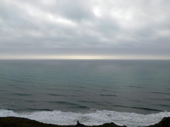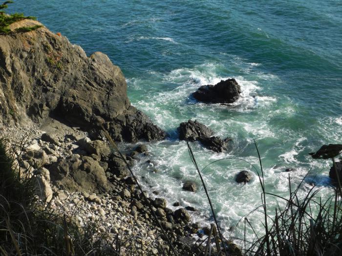 В 17:05 мы повернули на 101 трассу, идущую вдоль берега примерно в 50 км. Позади было уже 426 километров, пройденных за день. До места ночлега оставалось ехать ещё больше 200 км. Рассудок убеждал, что вылазка к океану — безумие. В конце концов, чего нам неймётся? Наш ночлег будет куда ближе к берегу! Но страстное желание увидеть океан прямо сейчас (на этот раз, единодушное у нас с мамой) победило. В 17:15 мы съехали по узкой, извилистой и круто скатывающейся вниз дорожке к побережью, в сторону Fort Bragg. В 18:10, одолев почти за час меньше 60 км серпантина, доехали до этого городка на побережье. Повернули по шоссе №1 в сторону Mendocino, на юг. И, километрах в 10 от Fort Bragg остановились на смотровой. Перед нами ревел и волновался ужасно Тихий океан.