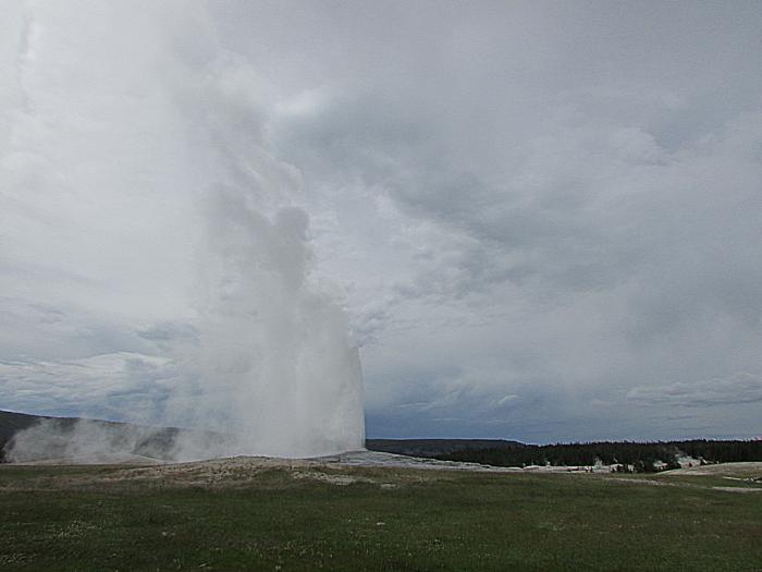 Выйдя из лоджа, я обнаружил, что рядом с дремлющим Old Faithful забил из земли другой гейзер, и тоже от души. Похоже, это был Beehive Geyser. Тогда мне повезло. Увидеть этот гейзер «в деле» считается большой удачей.