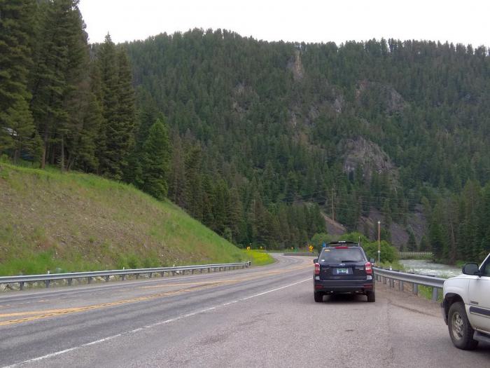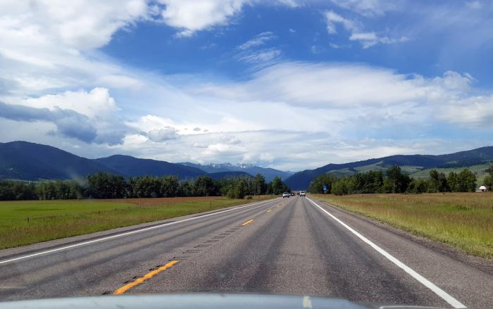 Из нашего роскошного кондо в Bozeman мы выехали в 10:35. Что-то поздновато… А! Это потому что мы уже покинули часовой пояс Pacific Time Zone. Местное время в Монтане отличается на час, так что в родном Сиэтле, по которому мы выставили бортовой хронометр, ещё только 9:35. Совсем другое дело. ;)
