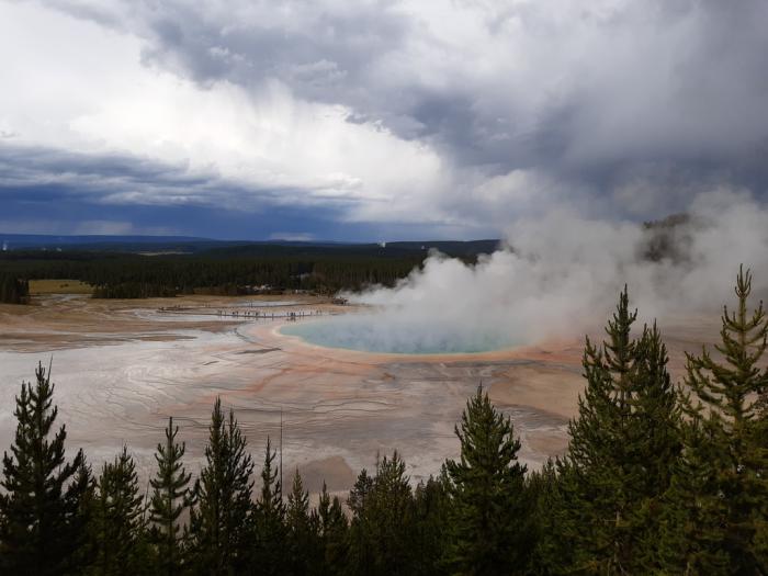 Дело в том, что Yellowstone — супервулкан. Теоретически, рано или поздно он может проснуться, взорваться или ещё что-нибудь этакое выкинуть (включая прицельное бомбометание огненными шарами). И тогда, конечно, мало никому не покажется. О перспективах того, что Йеллоустон «станет снова великим», так много говорят в сети и по ТВ, что когда мои родственники узнавали о наших планах посетить этот парк, они крутили у виска. А я им объяснял, что если вулкан рванёт во время нашего визита, нас может закинуть обратно в Россию, и мы сэкономим на билетах. ;)