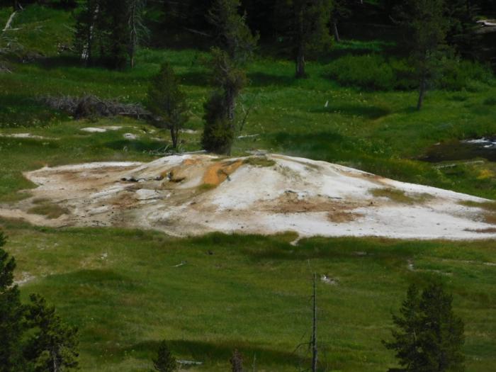 Сил и желания гулять по бассейну и искать другие, более эффектные, но менее предсказуемые гейзеры, и даже роскошные разноцветные источники, вроде знаменитого Morning Glory Pool, как-то не было. Тут только чтобы основные достопримечательности осмотреть, надо порядка 8 км нагулять, а если весь бассейн осматривать, то и все 13 км. Не для нашей команды. Маму я отправил к машине, а сам решил ещё чуть-чуть оглядеться.