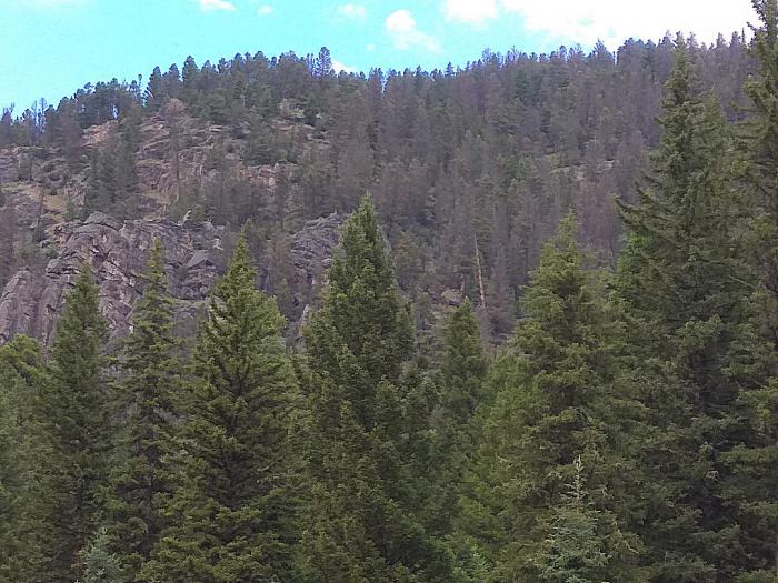 Мы лавируем меж отрогов Скалистых гор — колоссальной горной системы, тянущейся с севера на юг на протяжении порядка 5000 км. Я не планировал вновь воспользоваться 191-й магистралью в этом путешествии, поэтому мы с любопытством смотрим по сторонам. И завидев у обочины горную речку, делаем короткую остановку пофотографировать.