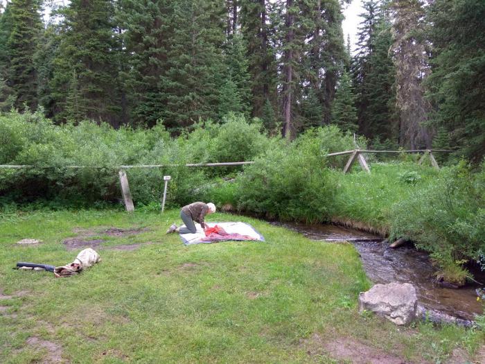 Мы молча смотрели на сиротливо мокнущую и сильно парусившую палатку. Надо было ехать, но мама переживала, что наш временный дом унесет без нас в ручей. "Может, спальники туда загрузить, для балласта?" — неуверенно предложил я. "И остаться ещё и без спальников?!" — возразила пессимистично настроенная мама.