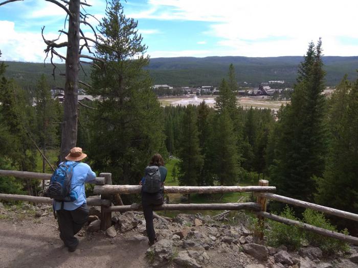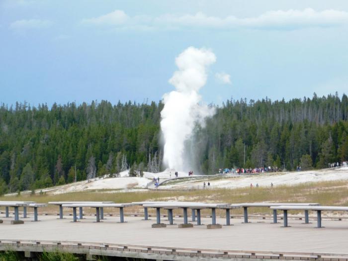 Здесь по деревянным дорожкам и утоптанным трейлам можно гулять часами, разглядывая разнообразные конусы, бассейны и бездонные провалы немыслимых расцветок. И всё же, основная масса туристов едет сюда, чтобы полюбоваться самым известным и удобным для посетителей гейзером — Old Faithful.