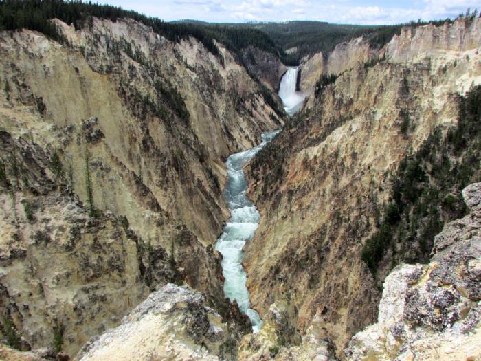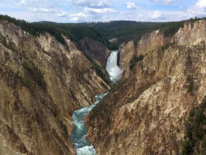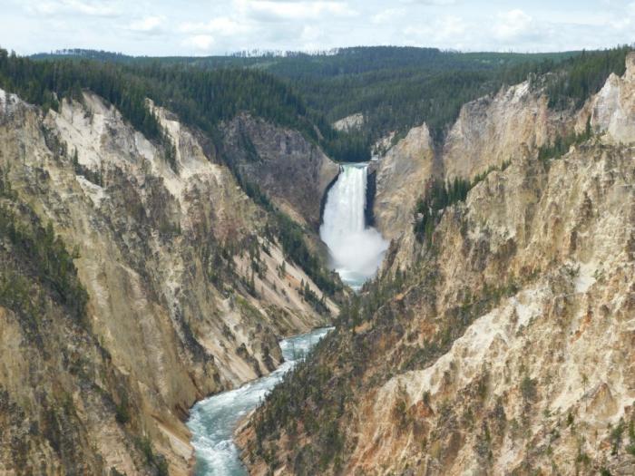 Пока что пользуюсь мощной оптикой, чтобы как следует разглядеть величественный водопад Lower Falls. Несмотря на свои 94 метра высоты, он не самый высокий в национальном парке. Но, по праву, считается самым эффектным.