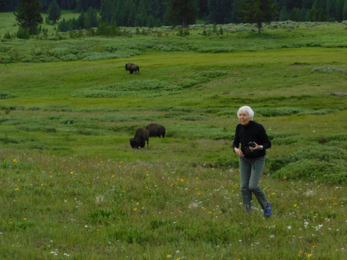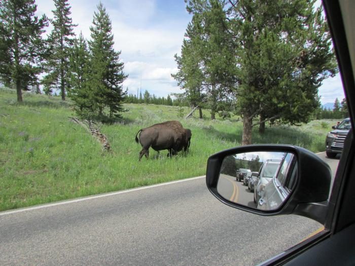 Когда-то на территории Северной Америки обитали порядка 30 млн. бизонов. Сейчас их дикие стада, без примесей крови другого крупного скота, встречаются только в Йеллоустоне. Тут их насчитывается всего 30,000. :( Но, слава Богу, что совсем не истребили. Отсюда бизонов расселяют и на другие охраняемые территории США. Ещё стада бизонов разводят на ряде ферм, мы их встретим в нашем путешествии и за пределами национального парка.