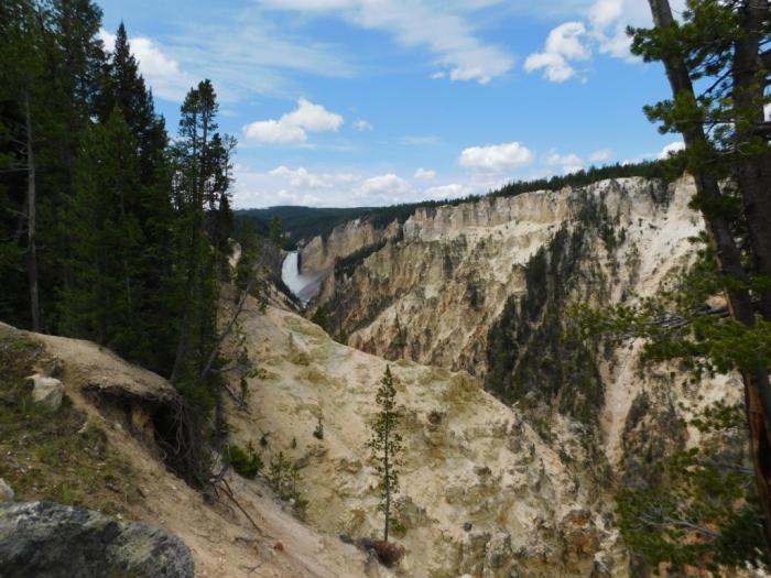 Здесь перед нами встаёт выбор. Каньон можно осматривать с северного берега реки, можно с южного. И там, и там вдоль тупиковых отворотов от Grand Loop есть смотровые площадки и трейлы к водопадам, пейзажи хвалят с обеих сторон, хотя они не одинаковые.