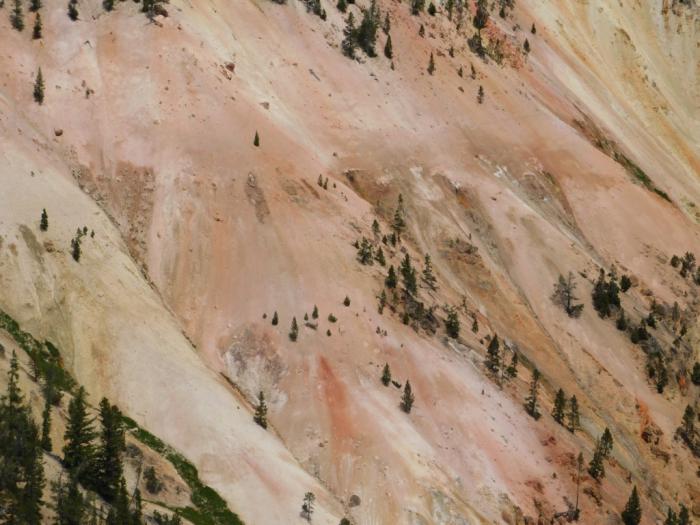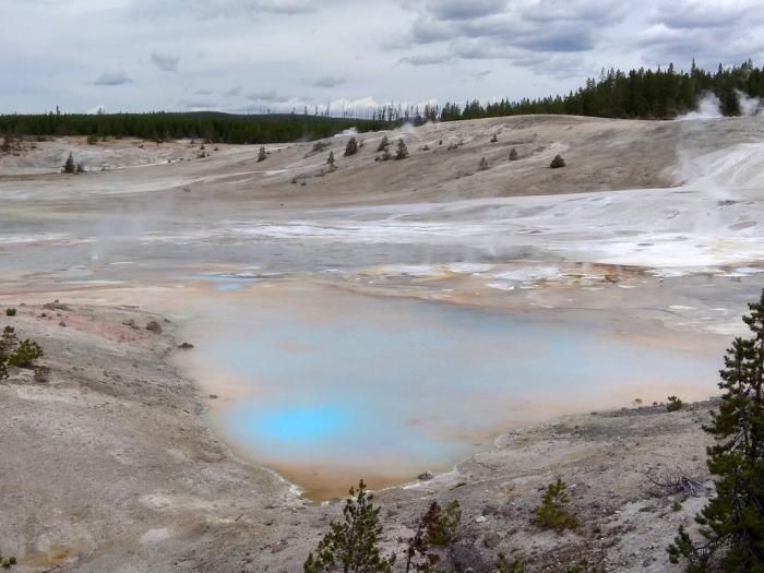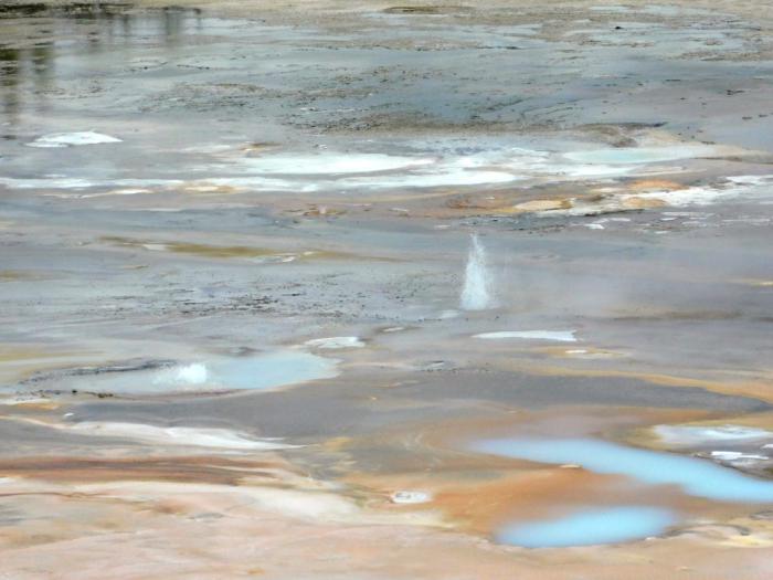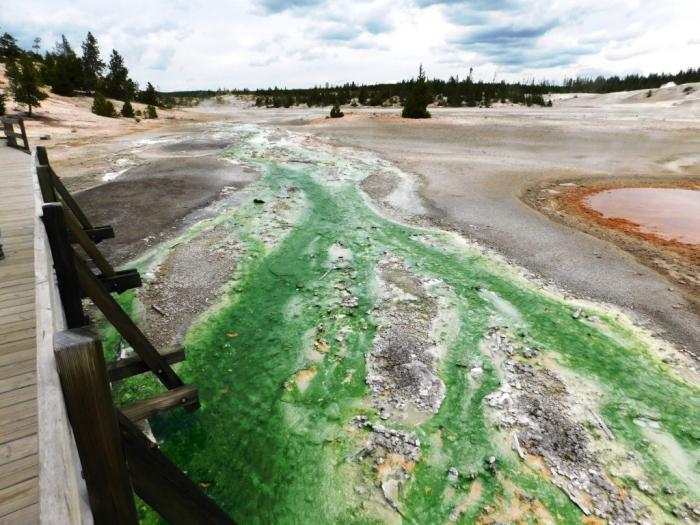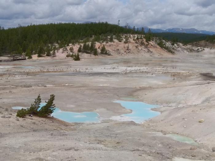 Кроме того, существенная часть текущих по плоской части Норриса вод насыщена кислотами. Тут есть отдельные кислотные гейзеры, плюющиеся чем-то вроде уксуса, что редкость даже для такого странного места, как Йеллоустон.