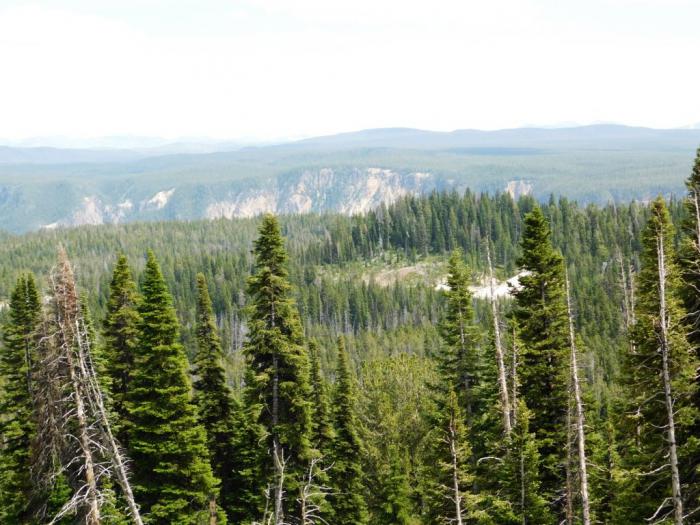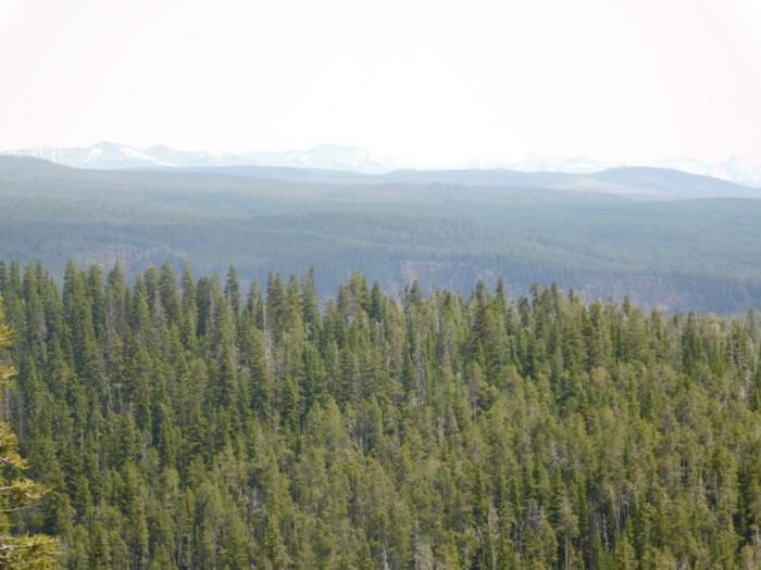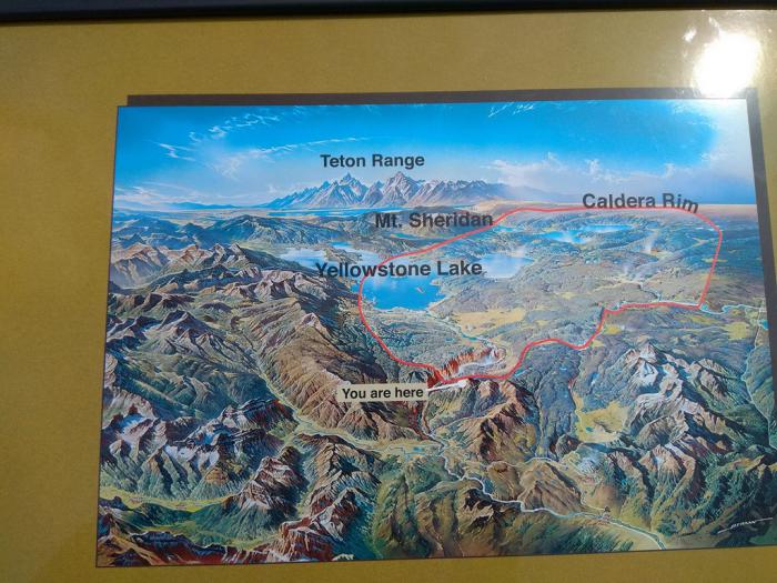 На перевале Dunraven ненадолго остановились. Отсюда открывался роскошный панорамный вид на Йеллоустон, а пояснительные рисунки помогали понять, где именно пролегают границы кальдеры.