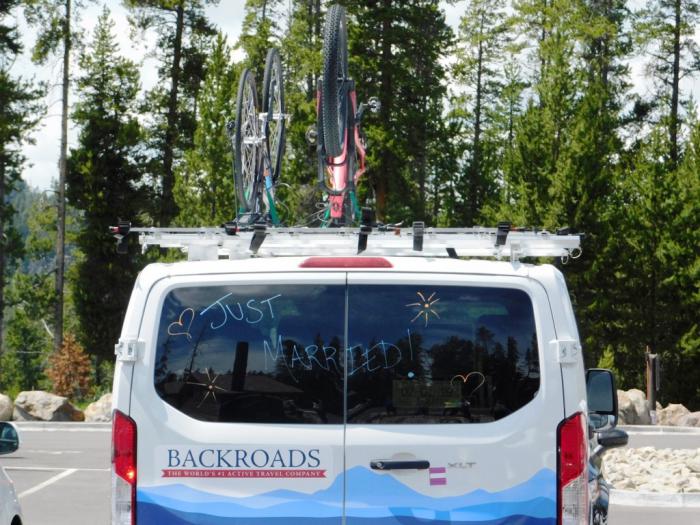 А мы, получив свою долю «пользы и удовольствия», двинулись вдоль южного берега обратно. Однако, проехав лишь пару км, решили навестить ещё и «хижину дядюшки Тома» — пункт, трейлы с которого могли подвести нас прямо к месту, где водопад вниз обрушивается. Вон, сюда даже активные молодожены ездят, что я не могу не одобрить. :)