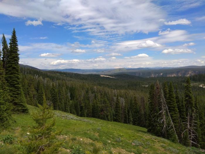 В 13:40 мы вернулись в Canyon Village из нашей вылазки к Гранд Каньону Йеллоустона. Навигатор предлагал маршрут в Bozeman по западной стороне восьмерки. Мы выбрали восточную и не пожалели. Grand Loop здесь — очень живописная дорога.