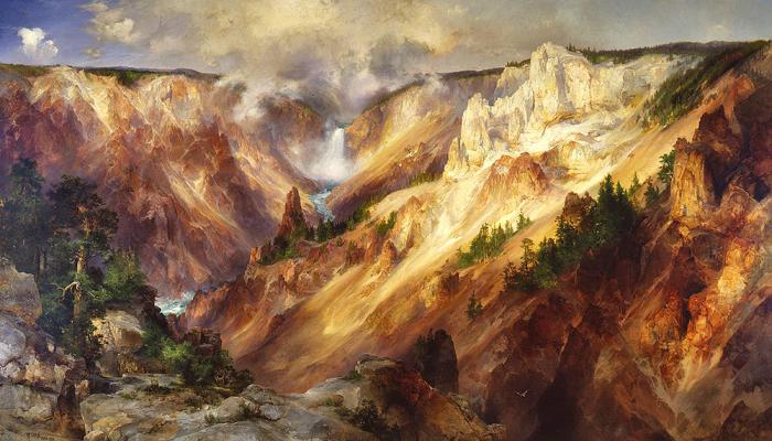 Проверить, сколько «фотошопа» было в творчестве художника, трудно. Место, с которого он рисовал эту картину, обрушилось в каньон при очередном землетрясении. Но так или иначе пейзажи Лэнгфорда послужили важным аргументом для создания первого в мире национального парка. Картины, вместе с фотографиями и карандашными рисунками других участников, были выставлены в здании Конгресса. Потрясенные парламентарии в 1872 году дружно проголосовали за то, чтобы взять эту красоту под охрану «для пользы и удовольствия народа».