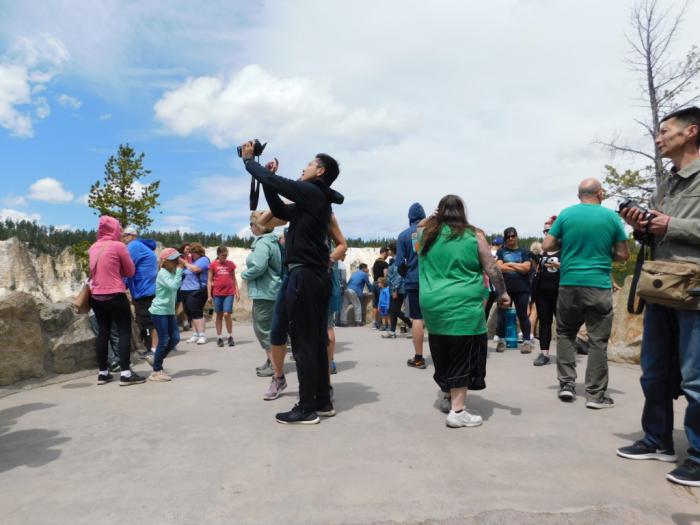 Доходим до смотровой площадки Artist Point. Здесь туристов уже полно. Чтобы подняться на возвышение и получить полную картину, приходится подождать своей очереди.