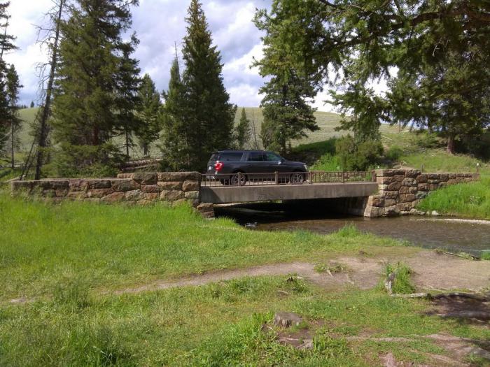 Время уже позднее, и наши желудки нам об этом настойчиво напоминают. Как обычно, перекус у нас с собой, надо лишь найти подходящее место. Карты парка, выданные рейнджерами при въезде в Йеллоустон, подсказывают, что по нашему пути должны быть места, отведенные для пикников. Проехав ещё 26 км, мы остановились пообедать в Lava Creek Picnic Area. Приятное место недалеко от дороги и возле ручья, вопреки названию совсем не похожего на поток лавы.
