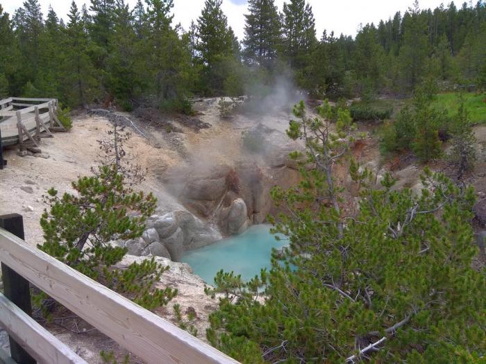 Норрис считается самым горячим местом во всём Йеллоустоне. На глубине 326 метров под поверхностью учёные намерили тут температуру в +237С. Поэтому почти вся вода в этом бассейне непрестанно кипит.