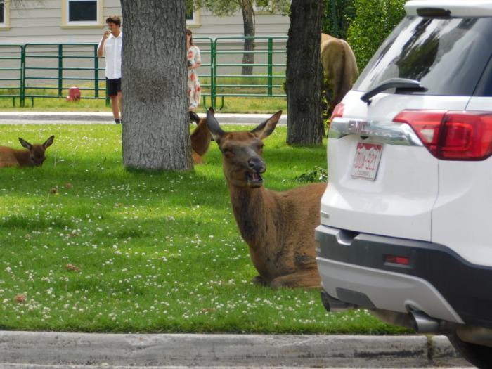 А пока что мы покидаем национальный парк через близлежащий городок Гардинер. Мало чем примечательный населенный пункт впечатлил нас, однако, качественными изваяниями оленей или ланей на городских газонах.
