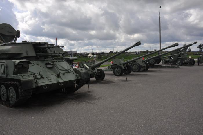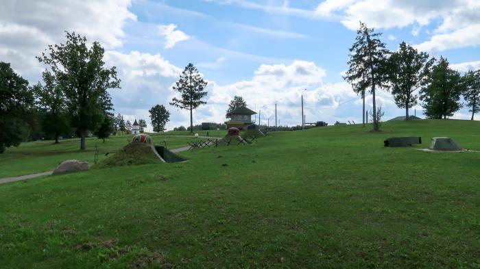 Приехали, без проблем нашли место на стоянке (благо день будний), купили билеты и пошли смотреть. Тут как в сказке: пойдешь направо, попадешь в историческую часть где находятся отреставрированные укрепления Минского укрепрайона. Пойдешь налево, попадешь на выставку советской военной техники. Пойдешь прямо, попадешь на огневой рубеж, где можно пострелять из охолощенного оружия, начиная от трехлинейки и заканчивая противотанковой пушкой, а пройдя еще дальше, мимо еще одной площадки с техникой попадешь на полигон, где проводятся исторические реконструкции и катают на различной бронетехнике.