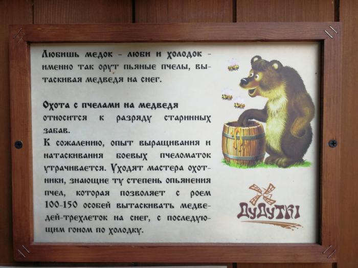 В общем здесь находится единственный в Беларуси официально разрешенный самогонный аппарат. Вся продукция, производимая этим агрегатом, идет на дегустацию для организованных групп, остальным – в местный шинок. Тут же представлены конфискованные у местного населения образцы народной, инженерной мысли и плакаты о вреде самогоноварения и пьянства советских времен.
