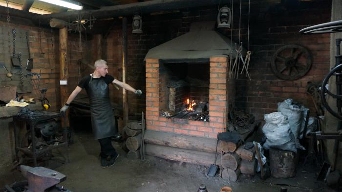 Зашли в кузню и пообщались с кузнецом, пока очередная организованная группа не подоспела.