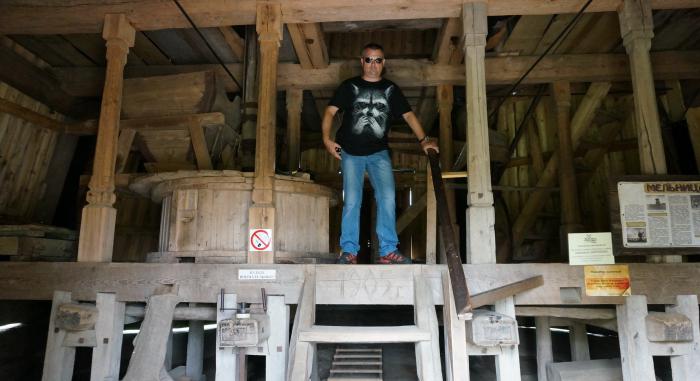 В общем еще раз – здесь гораздо интереснее слушать и наблюдать за процессом, чем делать фото на память. Понравившуюся продукцию мастеров можно приобрести, цены – туристические, но более – менее гуманные. Уже за основной территорией стоит деревянный храм (новодел, 2008 год), а вдалеке мельница (1903 – 1905 год постройки, перевезена в Дудутки в 1992 году).