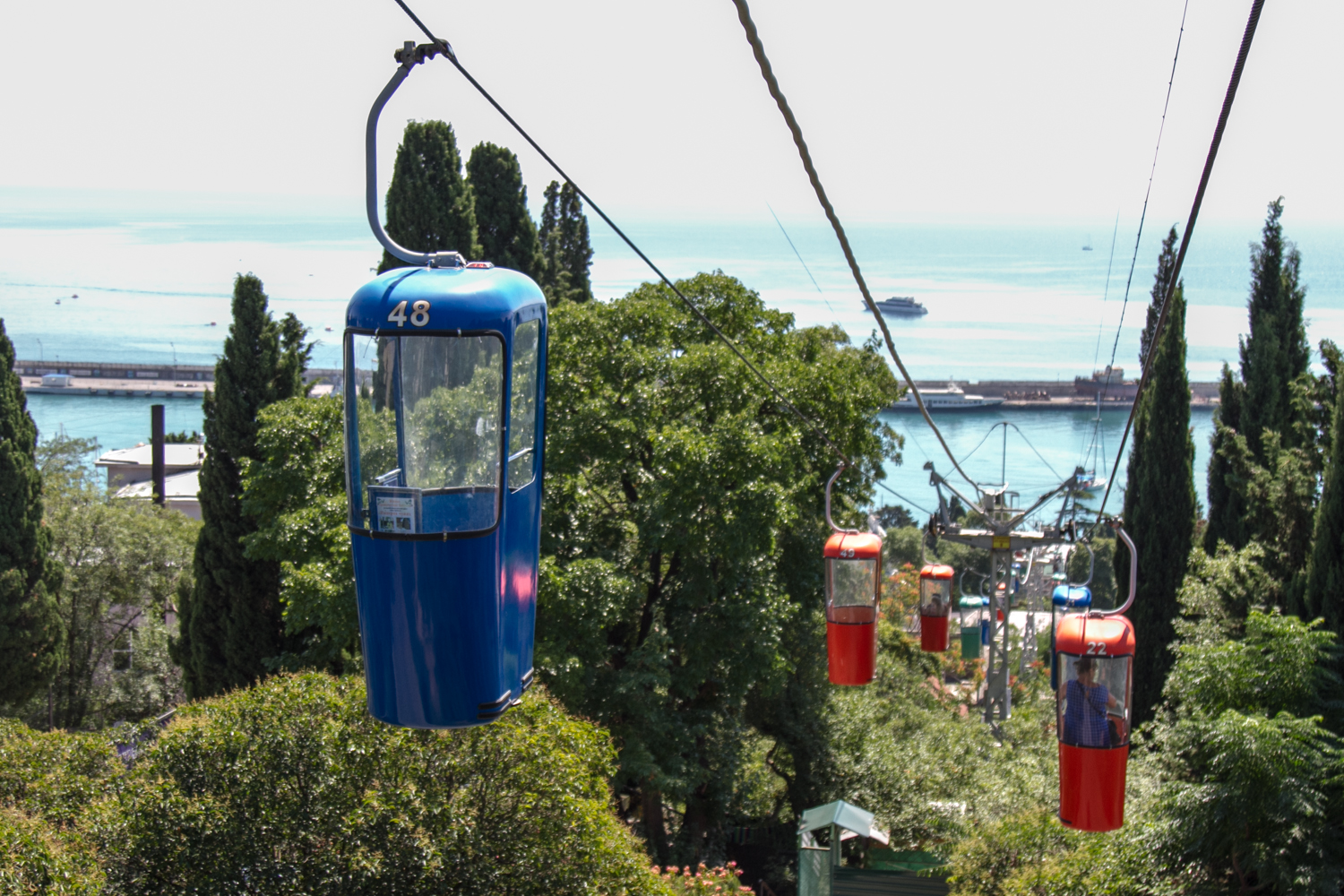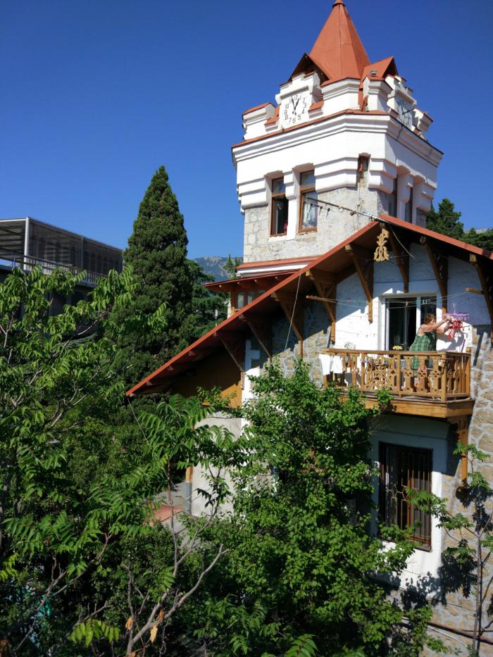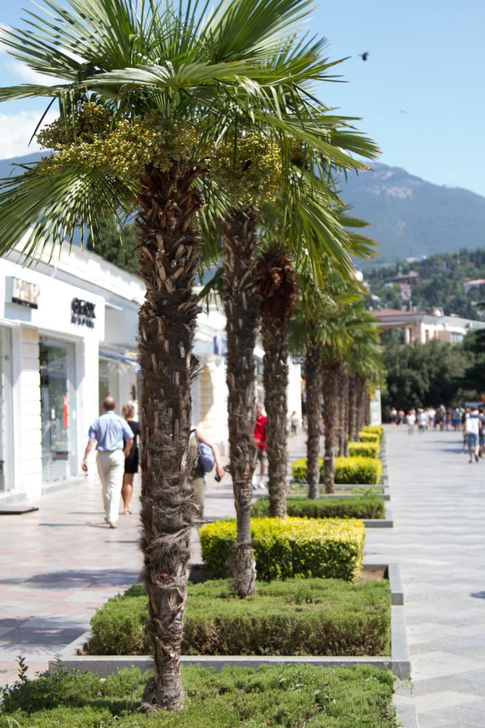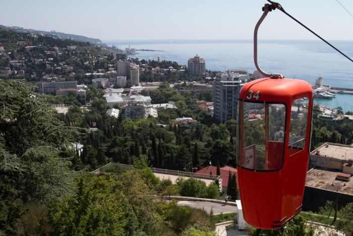 В десять утра Ялта манила красивыми вывесками десятков кафе, но это вам не Коктебель, где вас в 8 утра накормят завтраком, нет, всё, что попадается нам по дороге, открывается в 11 часов и не раньше. Канатная дорога пронесла нас над городом, давая насладиться набережной, балконами жильцов и общей панорамой Ялты. Из всех городских канатных дорог пока лидерство держит Нижегородская, здесь просто прикольная махонькая кабинка скользит над головами прохожих, мило и весело. Ялта вообще довольно милая, этакий памятник представлениям советской эпохи о том, что такое «жизнь удалась», всё здесь пропитано нафталином и ностальгией по былому. Есть в ней что-то прибалтийское, этакий престарелый ловелас, потряхиваемый Паркинсоном, намекающий на былые подвиги. Сюда надо ехать осенью, когда желтый и красный окрасят её в подобающие цвета, с улиц исчезнут летние туристы, а из окошка шуршащий патефон будет лить скрипучее «Отцвели уж давно хризантемы в саду….»