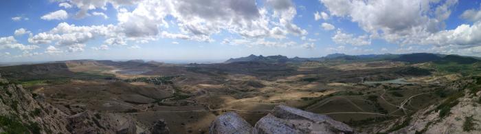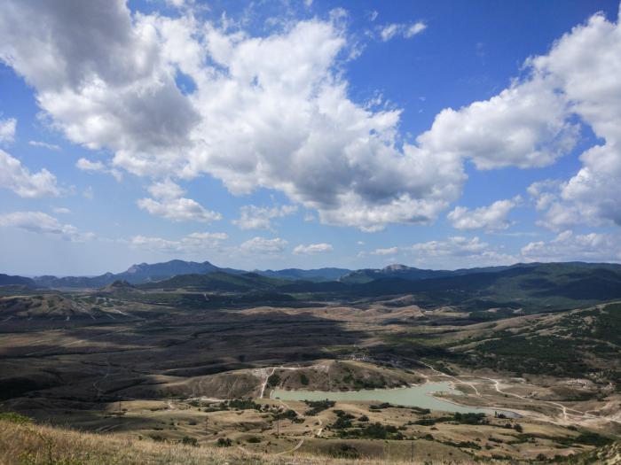 Быть в Коктебеле семь раз и ни разу не сходить на гору Клементьева, наверное, это настоящий позор. Но вы не представляете, какое удовольствие, когда в изученном вдоль и поперек месте, ты находишь совершенно новый бриллиант в коллекцию воспоминаний. Из Наниково, по очень непростой дорожке Патрикеевна подняла нас на Коклюк, всё для того, чтобы мы кричали «Вау! А где мы раньше были?!». Панорамы с Кара-дага или с горы Волошина хороши, но эта просто невероятная. Спустились мы уже по хребту Узын-Сырт, мимо лагеря парапланеристов.
