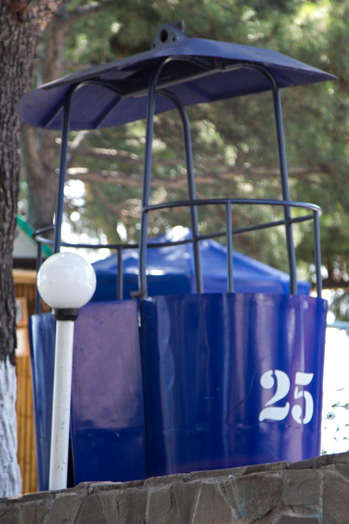 Наша первая беда на ЮБК — полное отсутствие нормальной туристической инфраструктуры, переводя на русский язык встать с палаткой и машиной, а в нашем случае просто в машине, здесь практически невозможно. В Алупке обозначен автокемпинг, приезжаем. Заасфальтированная автомобильная стоянка 30х50 метров, на территории шиномонтаж, СТО, автомойка. Выхода к морю нет, свободные домики только 4-х местные, которые надо выкупать целиком. Возвращаемся к Симеизу, обозначен кемпинг «Голубой залив», иду смотреть, слово «битком» не полностью отражает проблему. Все друг у друга на головах, стоимость – аховая. Находим клочок земли, на который влезает Патрикеевна, столик, два стула и всё. Двери открываются практически в палатку к соседям. Настроение падает в штопор.