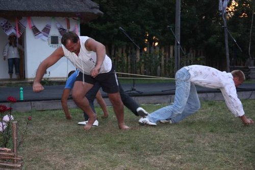 Потом словно «День Сурка», опять Псел, опять купание, снова заплыв против течения и опять с тем же успехом. Непременное растирание полотенцем до красноты и снова в номер. Но теперь уже, переодевшись, мы отправляемся на ярмарку. Правда, когда мы выходили из домика, очередная группа туристов туда попыталась (в ответ) зайти.