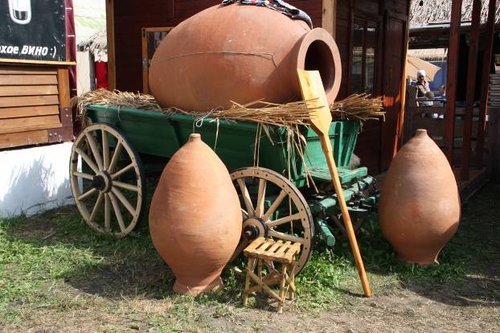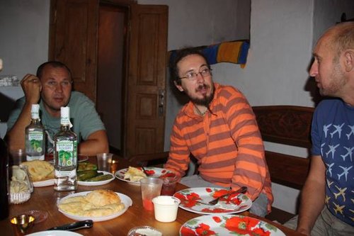 А в печи у нас был небольшой запас грузинских блюд. Хачапури, хинкали и т.д. Когда Саня позвонил, что подъезжает к Великим Сорочинцам, мы ещё бродили по ярмарке. По этому зашли в грузинский ресторан, который выставляет в Сорочинцах каждый год, пожалуй, одну из самых интересных экспозиций, и там всем этим и затарились.