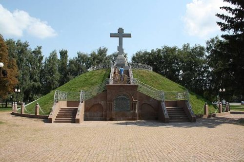 Самсоновская церковь и братская могила русских воинов, крест на могиле шведских солдат и памятник шведам от русских в двухстах метрах от церкви, прямо на пересечении ул. Шведской могилы и трассы на Миргород.